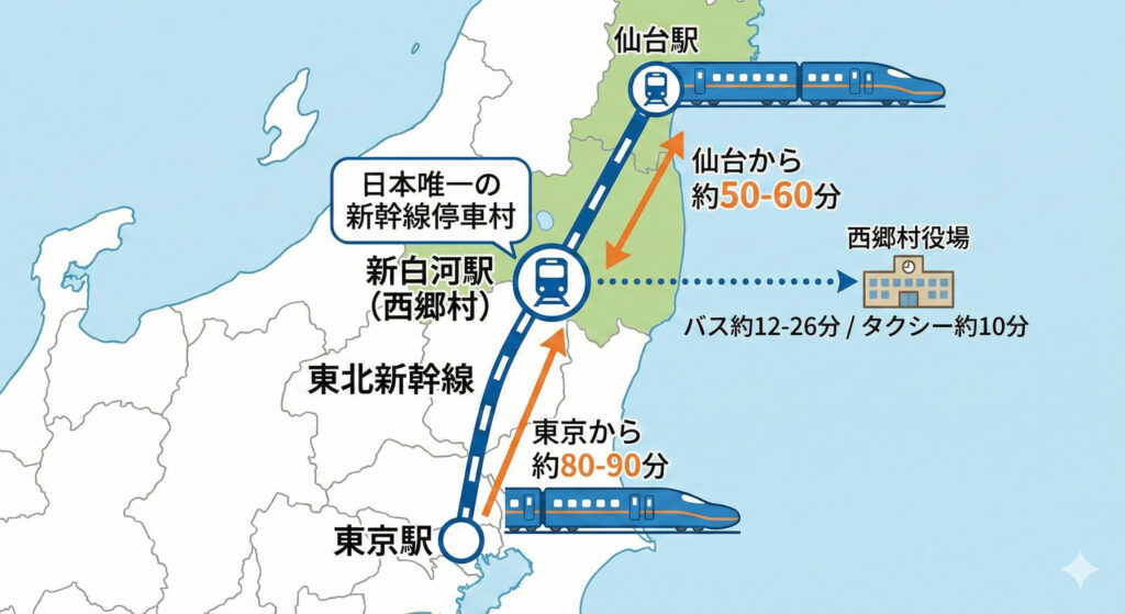 東北新幹線「新白河駅」が西郷村内にあります。